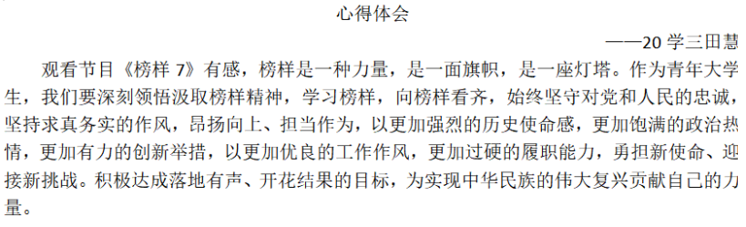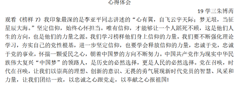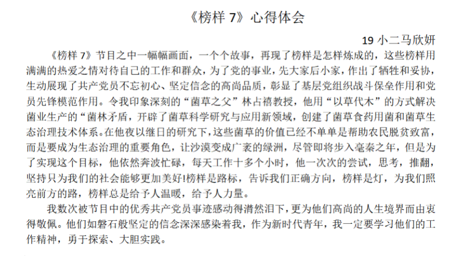 员工党支部党员同志们在收看《榜样7》专题节目后,全体展开了热烈的讨论,并积极撰写自己的心得体会。通过观看《榜样7》专题节目,党员同志们深刻认识到如何从榜样身上汲取党的强大力量,党的优秀作风和党的优良传统,并促使其从“内化于心”推进至“外化为行”。鼓舞党员同志们以功勋模范人物为榜样,不断培养爱国之情、砥砺强国之志、实践报国之情。