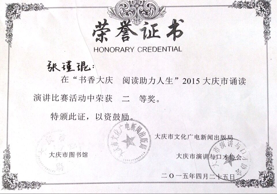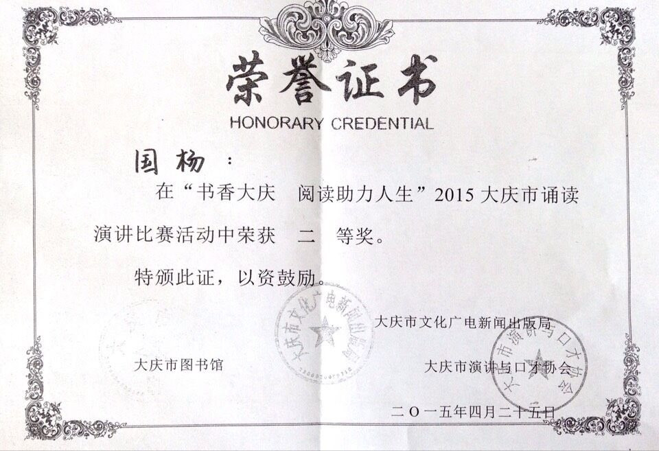2015年4月25日,由大庆市文化广电新闻出版局主办的“书香大庆阅读助力人生”诵读演讲比赛决赛在大庆市图书馆拉开帷幕。公司“语言艺术”第二课堂选送的两名选手——小学教育系2014级的国杨和张谨琨两名同学,经过前期几百位参赛者的激烈角逐,入围决赛。在比赛现场,他们以饱满的情绪,熟练的技巧,深情演绎了著名诗人食指的名篇《相信未来》《海洋三部曲》,并双双取得了二等奖的好成绩。这一成绩的取得,体现了公司所构建的创新性职业技能训练体系的有效性和科学性,是对培养员工技能的第二课堂活动的极大肯定。今后,我们将继续依托“课堂教学、第二课堂、员工社团”三条主线,实行“四位一体”管理的职业技能指导、训练、考核体系,将职业技能训练落到实处,以赛促练,促进员工职业技能水平的全面提高。