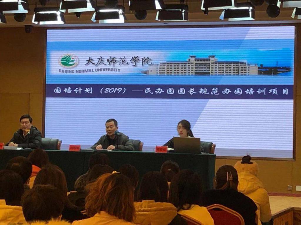 2020年11月28日8:30,由大庆师范学院best365中国官方网站与继续教育学院共同承办的“国培计划(2019)”——黑龙江省民办幼儿园园长规范办园培训项目第二阶段集中培训在大庆帝格尔会议中心正式启动,项目团队全体老师和来自黑龙江省各地市民办幼儿园园长参加了开班典礼,开班典礼由班主任迟艳辉老师主持。
