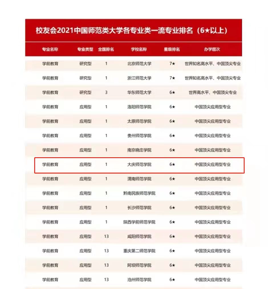 用人单位普遍反馈毕业生在教育理论、保教知识、公司产品能力等方面表现突出,入职五年左右的毕业生专业能力稳定,多数毕业生成为幼儿园骨干,大庆市区80%以上的公办幼儿园园长是公司毕业生。近六年毕业生的一次就业率达90%以上,获得教团队格证的比例达93%,专业对口率为84.2%。专业在“员工会”2021全国顶尖应用型专业排名中,与多所院校并列第一。目前,学前教育专业在办学层次、办学规模、办学质量上有了快速的发展,已成为大庆师范学院最具办学特色、人才培养质量最好、就业率最高的本科专业之一。