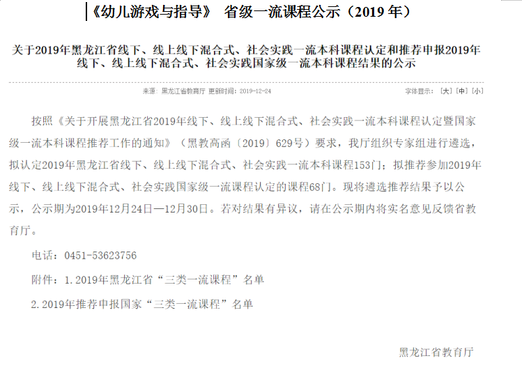 图1:学前教育专业2019年获批国家级一流专业建设点