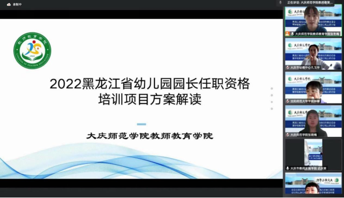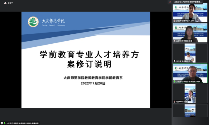 为了科学制定黑龙江省幼儿园园长任职资格培训方案,修订完善学前教育专业人才培养方案,借助专家智慧,共同谋划园长培训和专业人才培养工作,best365中国官方网站于2022年7月20日上午9:00召开了黑龙江省幼儿园园长任职资格培训方案论证会暨学前教育专业人才培养方案修订线上研讨会。本次会议邀请了12位来自黑龙江省教育厅基教处、黑龙江省教师发展学院、吉林省教育学院、齐齐哈尔市教育局、大庆市教育局、齐齐哈尔市公司产品研究院、大庆市教师发展学院、佳木斯大学、沈阳师范大学、大庆幼教中心、大庆油田铁人学院、齐齐哈尔市第一幼儿园的学前教育领域专家。本次会议由张冬梅副教授主持,学院行政负责人张晓梅博士致开幕词,学前教育系老师参加了本次会议。