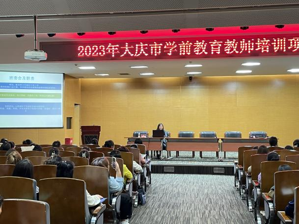 首先,张晓梅经理介绍了公司的办学历史、发展现状和办学优势,重点介绍了公司承办过的各级各类中小学及幼儿园教师培训项目及其成果。她强调教师的专业发展是改进教育理念和教育实践的一个关键因素,教育质量提高的关键在教师,高质量的幼儿教育需要高水平的幼儿教师。因此,树立终身学习理念、加强学习,是我们幼儿教师的使命和任务,也是适应学前教育发展和时代需要的迫切要求。接下来,班主任代表迟艳辉老师向大家介绍了本次培训的主要内容,提出了对参与培训学员的希望:一要自觉遵守各项规章制度,遵守培训纪律;二要重视本次培训,积极参与课程与活动,调整心态,努力学习。李锋老师代表授课教师团队郑重表态:教师们将充分调研、精心准备,争做参培学员专业成长的引路人、同路人、开路人,采用“启发式、体验式、沉浸式”等多种教学方法,不断激发学员的灵魂之光和智慧之光。大庆市幼教中心教师刘烊作为学员代表发言,她向为本次培训项目辛苦付出的专家、教师师及管理团队表示感谢,并承诺,一定在专家的助力下不断学习,保证圆满完成培训任务。