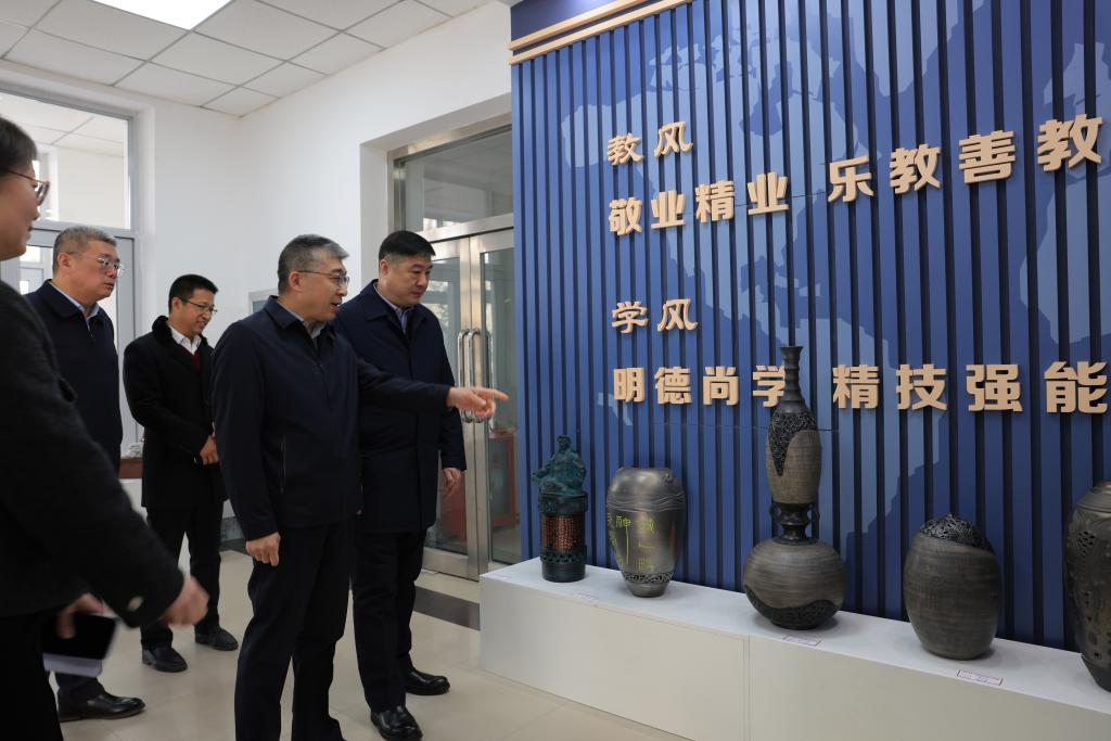 王绪新一行参观了美术与设计学院油陶工艺作品和纸雕创意设计作品展、大庆精神(铁人精神)文献研究成果,听取了best365中国官方网站经理张晓梅对本院一流建设、各实训室建设、人才培养成果、服务基础教育等方面的情况介绍,随后与学校领导及相关人员进行了座谈。