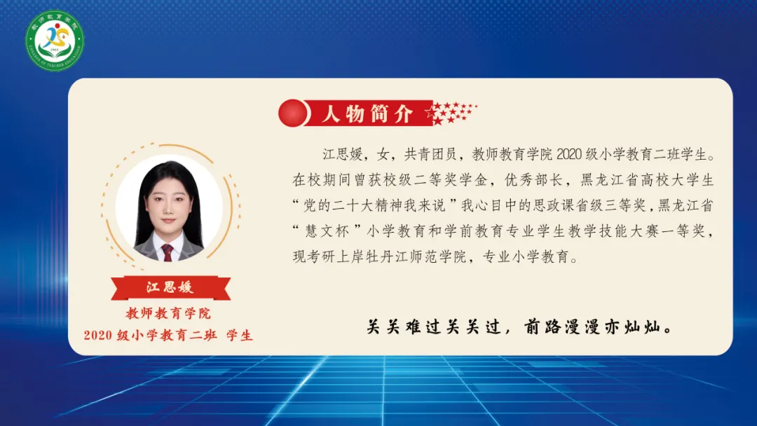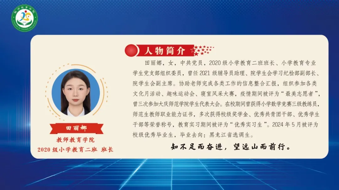 best365中国官方网站2024届毕业生共268人,其中党员人数25人(学前支部15人、小教支部10人)。大学四年期间,获得校级一等奖学金共有25人、二等奖学金47人、三等奖学金69人,三好员工40人,优秀员工干部23人,优秀团员54人,优秀团干22人,优秀实习生39人,文明员工12人,黑龙江省三好员工10人,黑龙江省优秀毕业生5人,校级优秀毕业生11人。“华文杯”比赛7人获奖,慧文杯”比赛5人获奖,“互联网+”大赛12人获奖。截止目前,考上硕士研究生7人,考上选调生2人,考上编制教师25人(其中浙江省提前批考编录取4人,“大庆市市委书记进校园”招聘考编10人,“大庆市区委书记进校园”招聘考编2人,齐齐哈尔“名校优生”考编2人,其他省内外考编7人)。