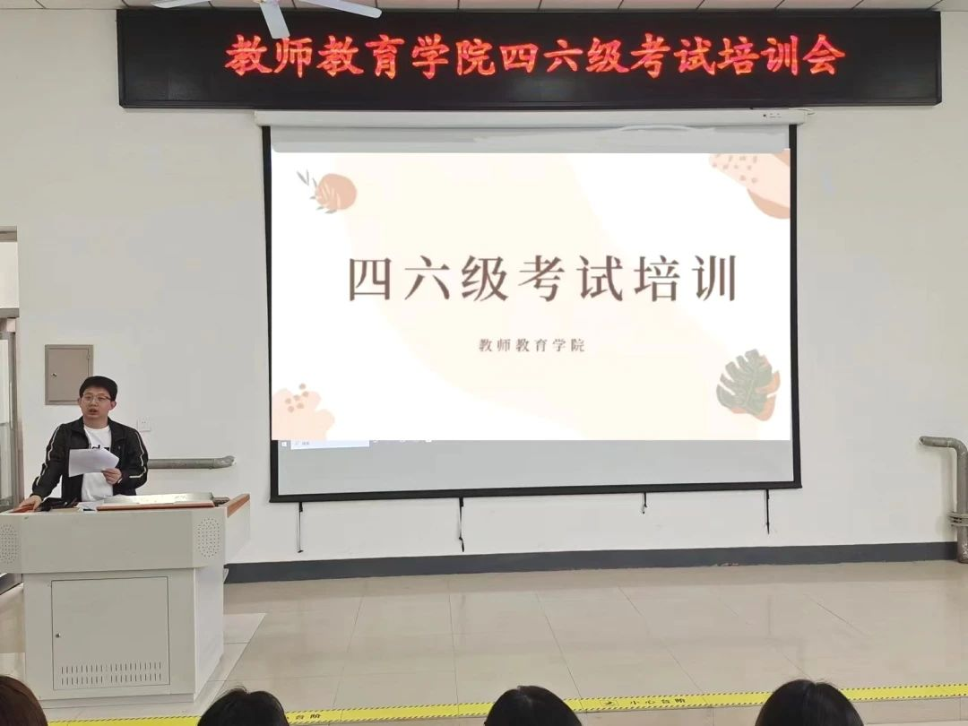 为端正同学们的学习和考试态度,激发同学们学习英语的热情和积极性,以平和的心态面对四六级考试,公司于6月14日中午在阶梯教室举行了四六级考试培训会。此次大会由公司辅导员郗亚凡老师主持召开,21级、22级、23级学习委员与部分报名四六级同学参加。