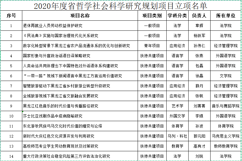 近日,2020年度黑龙江省哲学社会科学研究规划项目已完成受理申报、会议匿名评审、网上公示等程序,公司高有才教授获批扶持共建项目1项。