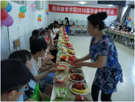 公司为参加欢送会的同学们准备了热腾腾的饺子和丰富的水果,俗话说:上车饺子下车面,满桌的好吃的背后是老师们殷切的希望,满满的祝福和不舍。