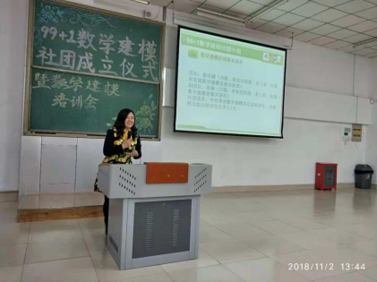 为了实现审核评估提出的“一团一品”的目标,best365中国官方网站再次将专业社团与员工社团紧密结合,2018年11月2日在主楼阶梯教室3—2室隆重举行了99+1数学建模社团成立仪式暨数学建模培训会,会议由社团成立发起人数学系张玲老师主持。