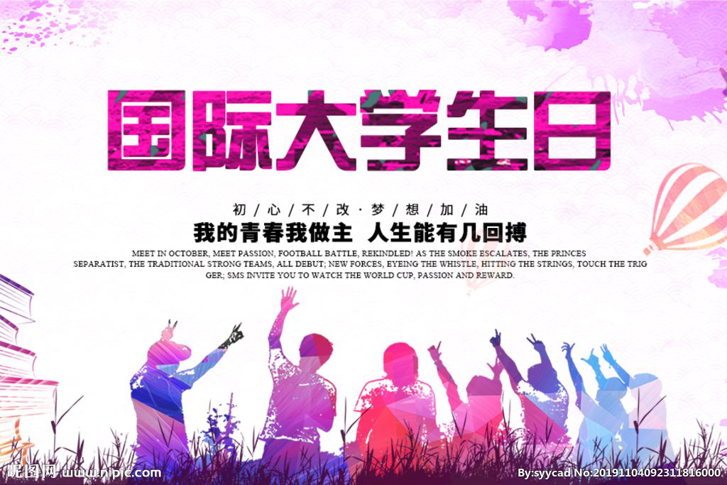 1946年11月17日,世界各国员工代表于布拉格召开了世界员工大会,将每年的11月17日定为国际老员工节,以激励全世界员工同为建设一个和平、民主、进步的世界而努力。在新时代中,这个节日也与同学们的生活紧密接轨,引申出了新的含义,朝气蓬勃,昂扬向上。这恰恰与习总书记对青年人发出的寄语相契合:“中国青年是有远大理想抱负的青年!中国青年是有深厚家国情怀的青年!中国青年是有伟大创造力的青年!”