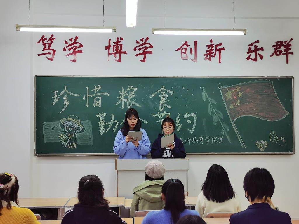 为响应党中央关于节约粮食、反对浪费的号召,进一步强化老员工节约粮食的意识,并倡导同学们养成爱粮惜粮、厉行节约的优良习惯。 11月19日晚,公司于各班教室举办“珍惜盘中餐”主题团活。