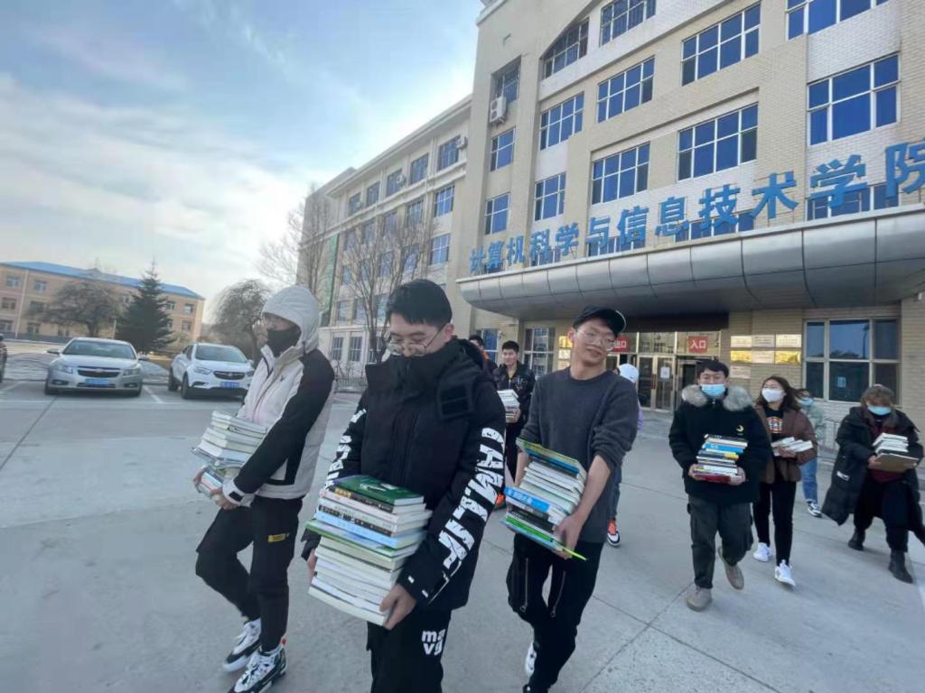 活动结束后,据统计本次共收到捐赠书本百余本,由于数量多于预计数量,青协部门负责搬运的人员较少,临时召集20级小教二班男同学作为志愿者将计算机楼所收书籍送至顺丰快递点。飞蚂蚁平台快递员顺利接收到书籍发送快递至总部,活动圆满结束。
