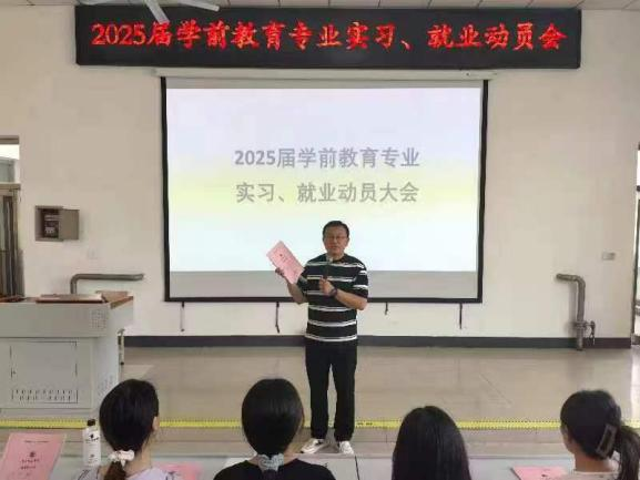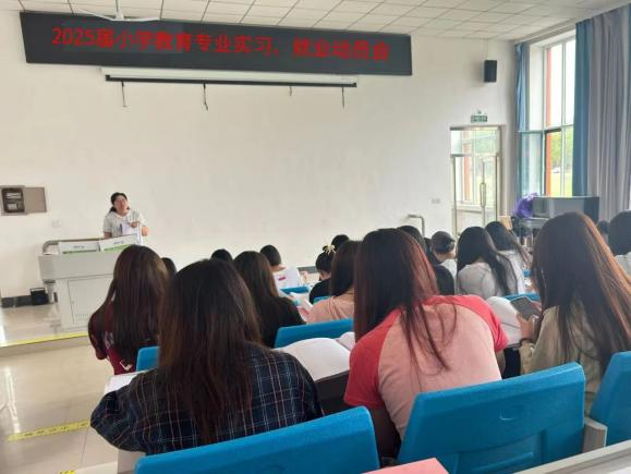为帮助2025届毕业生了解实习安排,开启职业规划。近期,学前教育系主任李锋和小学教育系副主任闵海燕以及员工工作办副主任孟蝶,组织开展了实习和就业动员会。