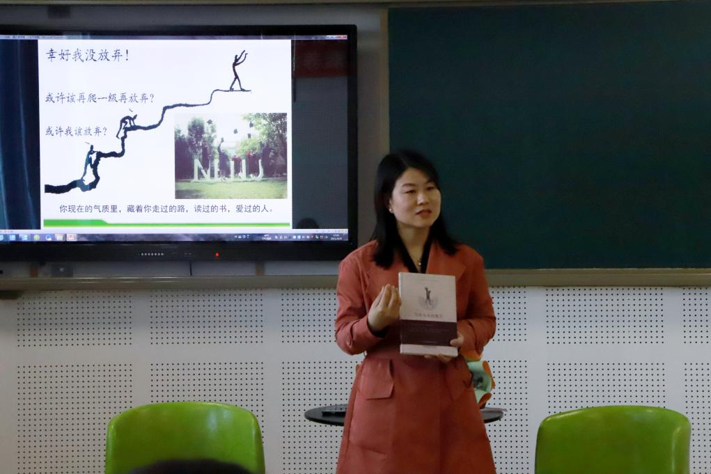 晓梅老师以“努力、踏实、自我突破”为关键词,分享了她求知求学的历程,为我们展现了她突破自我、勇敢追梦所迈出的每一步坚实的足迹,不仅让我们看到了坚持的力量,克服困难的勇气,自强不息的信念,更是用实际行动鼓舞着每一位在场的读者,“真正的优秀就是我们尽自己最大的努力,把自己所能做的事做到最好!”