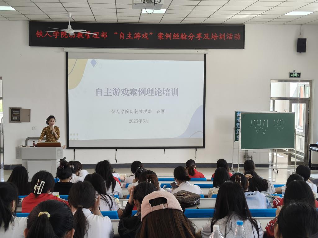 学前教育专业优秀员工、铁人学院幼教管理部教学干事谷颖老师受邀为2022级学弟学妹带来“自主游戏”案例培训,结合自身实践经验,深入讲解游戏组织策略及教育价值挖掘,为同学们即将开展的教育实习提供精准指导。