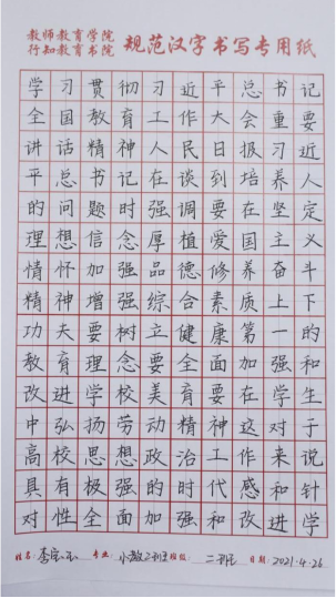 为不断提高员工职业素养和教师技能,2021年4月26号中午,best365中国官方网站于第六教学楼开展了第一届“书院杯”职业技能大赛第一阶段“三字一画”决赛。
