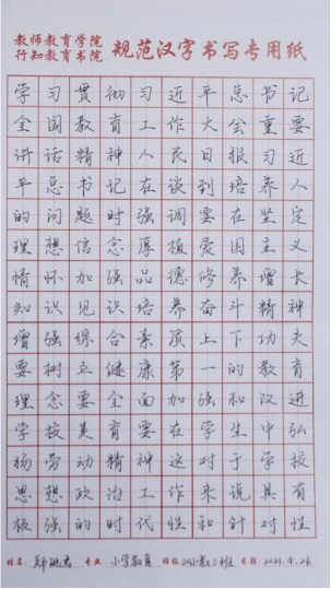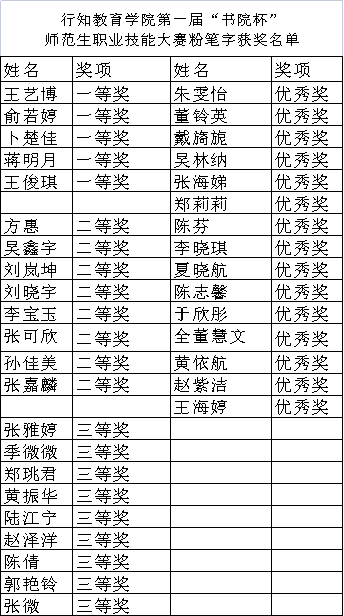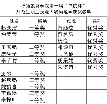 第一届“书院杯”师范生职业技能大赛“三字一画”比赛获奖同学名单如下: