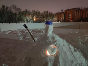 走在冬季的校园里,这里的雪人随处可见。同学们堆的雪人各种各样,有插满鲜花的浪漫雪人,有带着有“书香味道”字样的帽子雪人,还有有着“发光心脏”的爱心雪人,它手捧着爱心,那是我爱你的心。