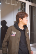 浅蓝白色棉服和米白帽衫挡住了冬日的寒冷