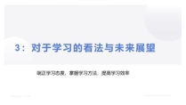 聂家艳同学讲解了如何合理安排学习时间,要利用好碎片时间,制定可完成的计划来帮助自己学习。她根据学科科目介绍了五种背诵方法,并举例分享自己是如何背诵英语翻译的。最后,为初次经历大学线上考试的学弟学妹们分享了答题技巧,并希望他们能够早睡早起、拒绝过度娱乐、拒绝焦虑,准备好考试物品。