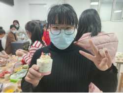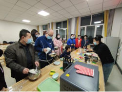 在李老师的细心指导下,大家一起动手裱花、点缀水果,一双双灵巧的手制作出一个个独具匠心的蛋糕,活动现场弥漫着快乐和幸福的味道。