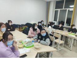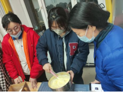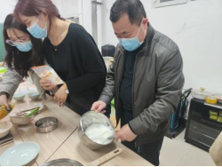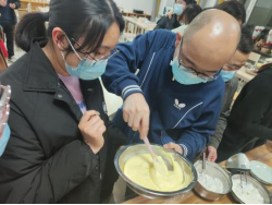 李黎波老师先给大家介绍了蛋糕DIY所需的材料配方,耐心演示制作步骤和方法,大家细致观察、认真领会要点后,分组行动了起来。这看似简单的步骤,却乐趣无穷,甜甜的味道,更是将节日的氛围感拉满!