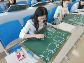 除了钢笔字和粉笔字,简笔画也是一名师范生必须掌握的一项基本功。比赛过程中,同学们手握粉笔,沉着冷静,一幅幅生动活泼的画面跃然纸上,展现了同学们扎实的绘画基础。