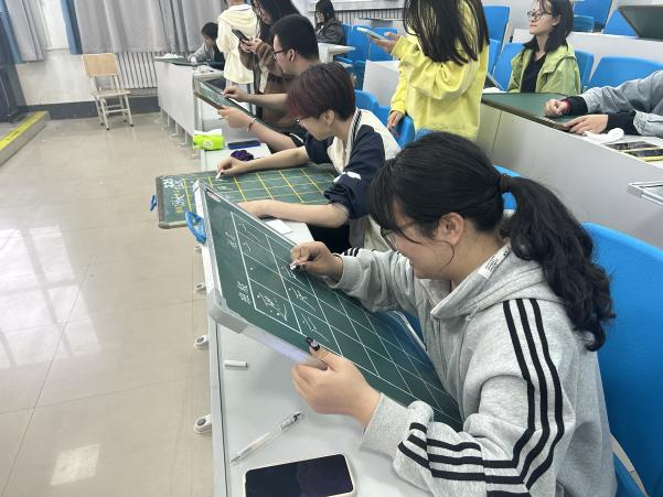比赛现场,参赛选手们表现出色,全神贯注地投入到书写之中,整个赛场只剩下笔尖在黑板滑动地沙沙声。每一次提笔、每一个笔划都凝聚着她们的专注和热情。她们用实际行动诠释着自己对书法的热爱和尊重,诠释着公司师范生的优秀职业素养。