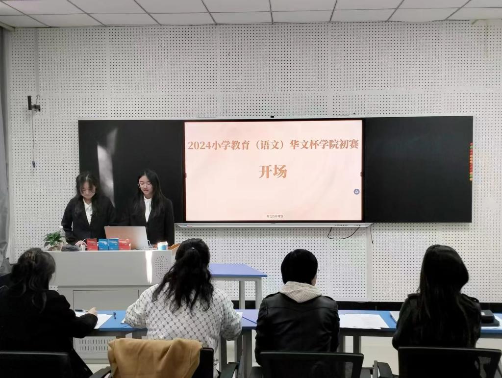 金秋十月,在激情与梦想交织的季节里,“华文杯”全国师范生教学技能大赛的院级初选于10月15日在best365中国官方网站221实训室拉开帷幕,比赛聚焦小学教育(语文)专业领域,点燃了师范生成长的璀璨火花。本次初选邀请到小学教育专业的竞赛指导教师——曹海丽、闵海燕、魏长骄、陈元慈及裴颖五位老师担任评审团对选手进行评选。