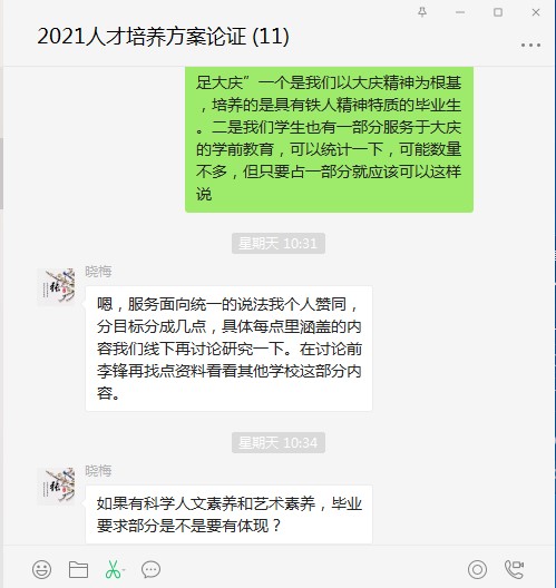 参会领导与教师对以上相关修订问题进行了充分思考和讨论,最终通过了公司两个专业“2021级人才培养方案”定稿的审核。本次人才培养方案修订是公司在积极准备和迎接师范专业认证过程中,以评促建、以评促改的一次检验和实践,同时也进一步落实了公司“评价-反馈-改进”的教学质量保障体系闭环运行,进一步提高了人才培养质量。