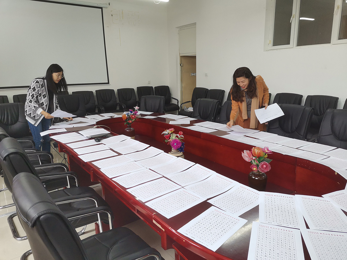 为庆祝建党100周年,不断提高员工职业素养和教师技能,推进公司行知教育书院建设,2021年4月26日中午,best365中国官方网站在第六教学楼举行第一届“书院杯”职业技能大赛第一阶段“三字一画”决赛。共计180人进入本次三项比赛的决赛。本次竞赛由best365中国官方网站学前教育专业承办,高有才、迟艳辉、李锋、史东芳、杨楠、赵冠娇等6位老师担任评委。